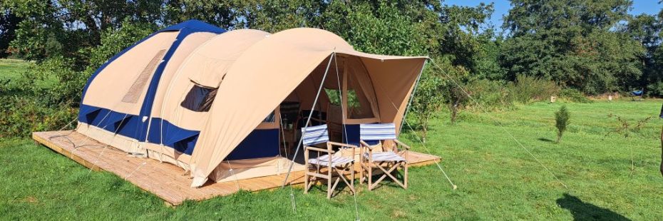 Onze ingerichte tent is geschikt voor twee personen. Er is ruimte om een kinderbedje neer te zetten.De prijs per nacht is inclusief stroom en twee buitenstoelen. Bedlinnen en handdoeken kan je apart bijboeken voor €17,50 per set. Het is niet mogelijk om te koken in de tent maar Deze tent is te huren vanaf minimaal […]